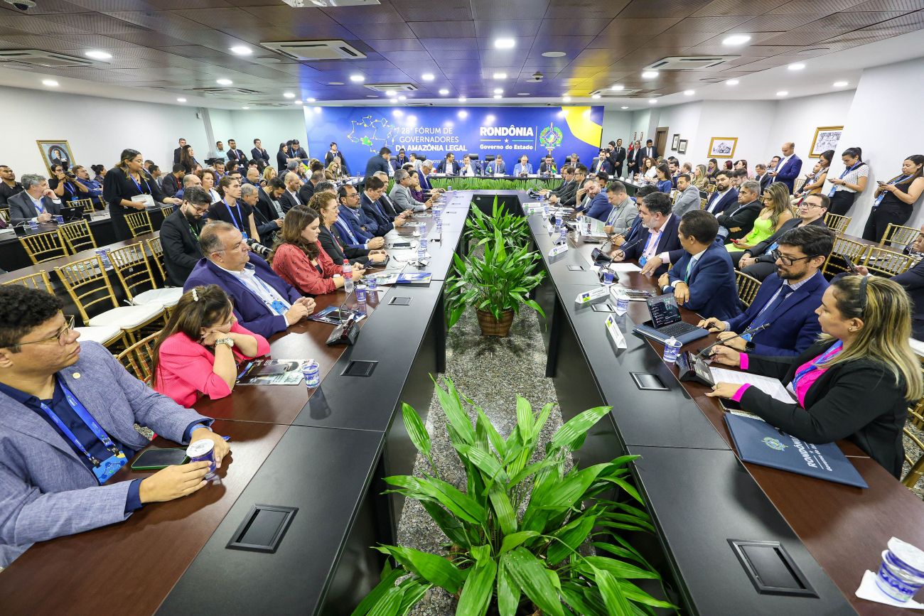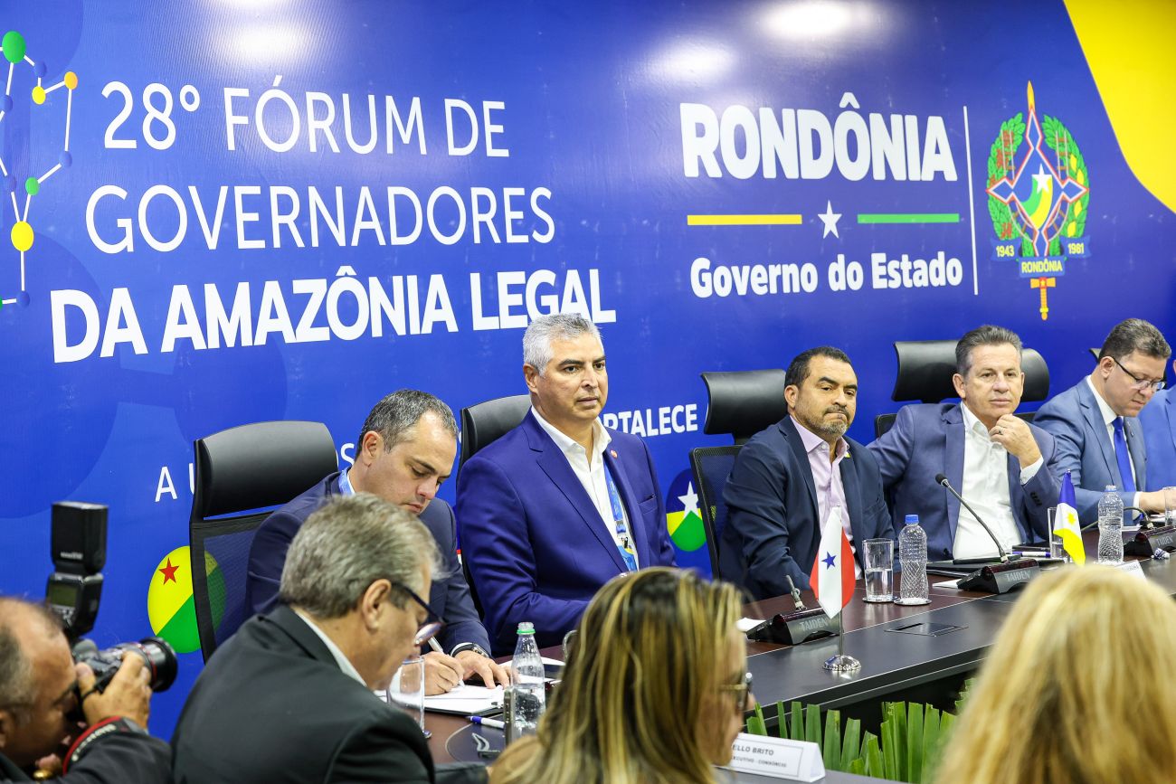 A edição de número 28 do Fórum de Governadores da Amazônia Legal, realizada na última quinta-feira, 8, no Palácio Rio Madeira, em Porto Velho, sede do Governo de Rondônia, contou com a presença de governadores e representantes do Consórcio que debateram temas estratégicos para região, entre eles, Governança Fundiária, Agricultura e economia verde, Infraestrutura e Transporte, Meio Ambiente e desenvolvimento sustentável, além da Segurança Pública.
