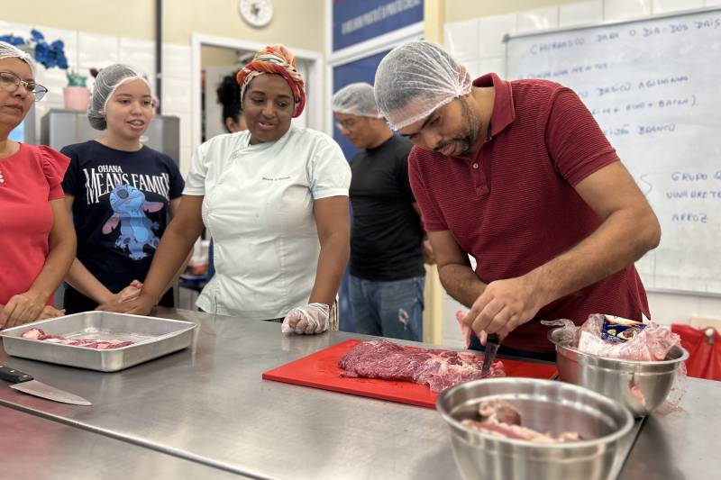 Engajamento - Para Reberson Mendes, um dos participantes, o curso de churrasco “é uma ótima oportunidade para aprender sobre a manipulação adequada dos alimentos e técnicas de preparo. É importante ver os homens se envolvendo mais em atividades como esta, que tradicionalmente eram associadas às mulheres. Além disso, esse tipo de atividade ajuda a fortalecer o vínculo com a família”.