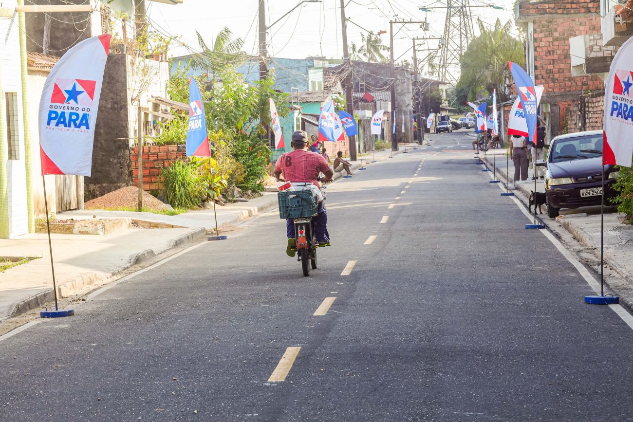 Moradores da Cabanagem já usufruem das vantagens garantidas pelo programa de pavimentação do Governo do Estado O Governo do Pará vai entregar, na noite desta terça-feira (13), com 10 quilômetros de asfalto, sendo 11 ruas contempladas no bairro da Cabanagem, em Belém. Desde 2019, o Estado já beneficiou moradores do bairro com quase 10 quilômetros de pavimentação. A melhoria da qualidade de vida, com mais infraestrutura e melhores condições de mobilidade, resulta dos investimentos realizados via Programa “Asfalto Por Todo o Pará”.