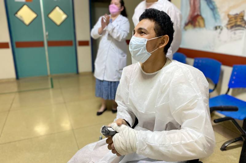 “Acredito que logo, logo estarei 100% e recuperado. Fiz a cirurgia de enxerto na perna há uma semana e já está quase cicatrizado totalmente. Quero agradecer mesmo por todo suporte”, comenta.