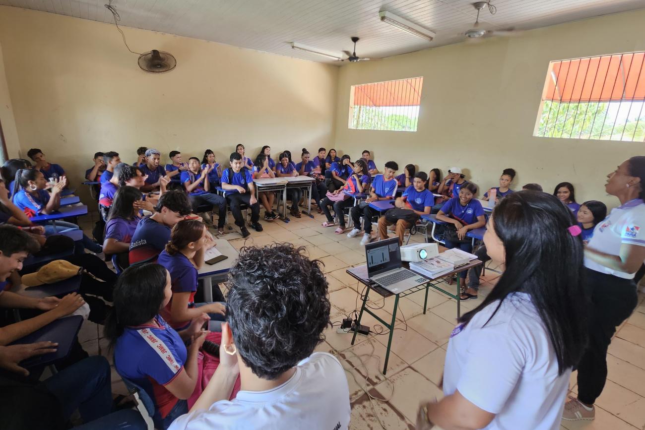 Era para ser uma tarde normal com aulas que integram a grade curricular das turmas do ensino médio. No entanto, os alunos da Escola Estadual João Batista de Moura Carvalho, localizada em Benevides, município da Região Metropolitana de Belém, foram surpreendidos com uma ação pedagógica realizada pela Secretaria de Estado das Mulheres (Semu), na tarde de terça-feira (13). A iniciativa faz parte da campanha do governo do Estado "Pela Vida Delas - Feminicídio Zero", em alusão ao "Agosto Lilás".