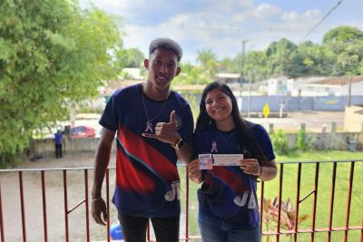 Estudantes Maickon e Jucylene: aprendizadoFortalecimento - Em fase de preparação para o Exame Nacional do Ensino Médio (Enem), a estudante Jucylene Amador entende que a ação é fundamental para o fortalecimento das mulheres. "Acredito que incentivar outras mulheres a denunciar a violência sofrida dentro de casa é um desafio. Hoje, eu saio daqui mais fortalecida como mulher, e entendendo que esse projeto é fundamental para que a gente possa combater o machismo".