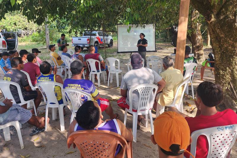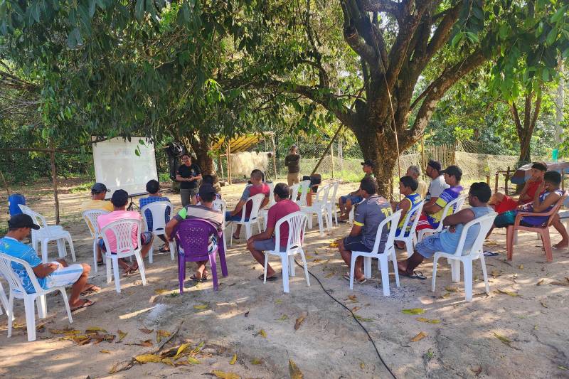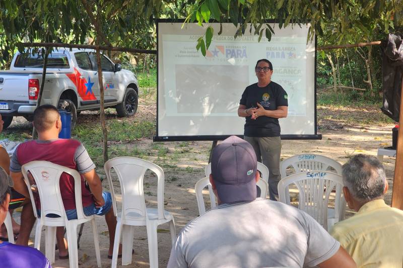 Em abril deste ano, ocorreu o reconhecimento da área e novas reuniões foram realizadas com representantes dos quatro polos que compõem o Acordo. Entre maio e julho de 2024, o monitoramento intensificou-se com visitas às comunidades para assegurar que as regras estabelecidas estavam sendo seguidas. Em maio, houve fiscalização da Semma Bragança nas áreas de pesca abrangidas pelo Acordo, e em julho, além da continuidade das visitas, foi feita entrega de material informativo às comunidades, reforçando a importância do cumprimento das normas. As palestras realizadas em agosto também fazem um esclarecimento sobre os danos ambientais causados pela captura e criação irregular de passeriformes, com a presença do técnico da Gerência de Projetos em Fauna, Aquicultura e Pesca da Sagra/Semas, Thadeu Cantão.