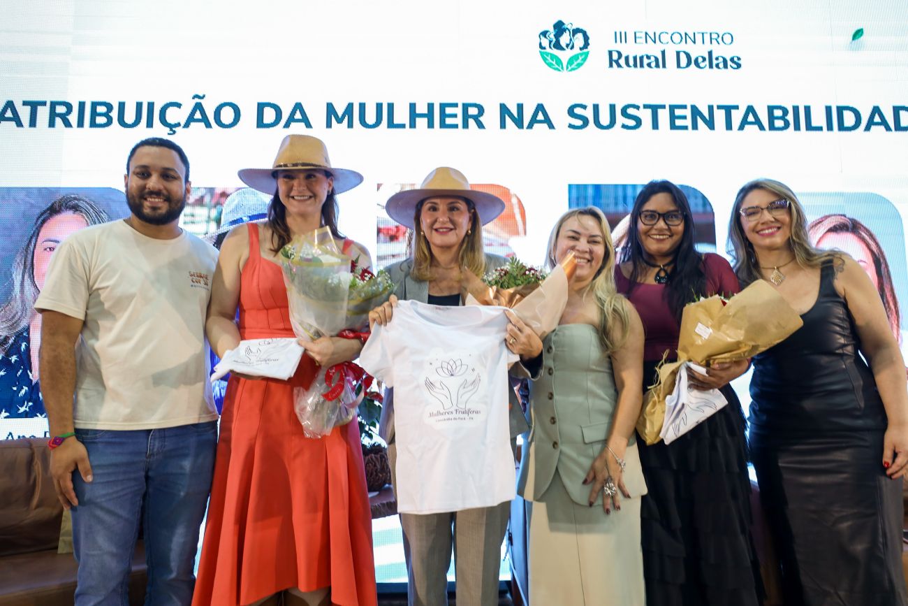 Vice-governadora Hana Ghassan ao lado de produtoras rurais e organizadores do eventoA vice-governadora do Pará, Hana Ghassan, ressaltou a importância da economia verde para o desenvolvimento sustentável do sudeste paraense, durante sua participação na III edição do “Rural Delas”, evento da Feira Agropecuária de Paragominas, na manhã desta sexta-feira (16). Ao falar para um público formado principalmente por produtoras rurais, Hana Ghassan, que também preside o Comitê da COP 30 (conferência mundial sobre mudanças climáticas), abordou o tema “Desafios sobre a ótica de uma liderança sustentável”, enfatizando a necessidade de promover práticas que integrem a conservação ambiental ao crescimento econômico, com ênfase no empoderamento das mulheres no setor agropecuário.