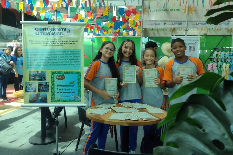 Em Ananindeua, estudantes da Escola Estadual de Ensino Fundamental Icuí Laranjeiras, elaboraram um livro de poesias autorais, sobre o meio ambiente, e apresentaram no estande da Secretaria Estadual de Educação do Pará (Seduc). O material autoral é fruto de um projeto da escola chamado “Conversas Literárias”, que acontece no decorrer do ano letivo e engaja todas as turmas da escola, aproximadamente 317 estudantes.