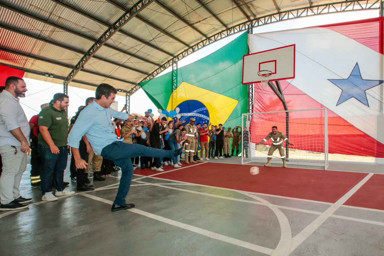 Na ocasião, o Centro de Formação do Corpo de Bombeiros recebeu a nova quadra poliesportiva, com investimento avaliado em R$ 818.734,76.