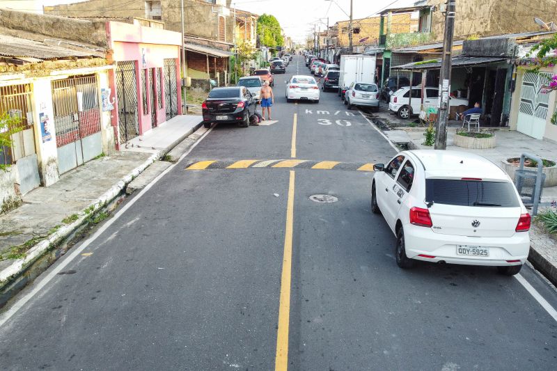 Além da Rua Raul Soares, a Rua da Mata - entre a Avenida Rodolfo Chermont e a Rua Quarta - também foi beneficiada com o asfalto. Moradora da Marambaia há 50 anos, Sandra Moraes listou as dificuldades da ausência de pavimentação e as melhorias proporcionadas pela obra do Governo do Pará.