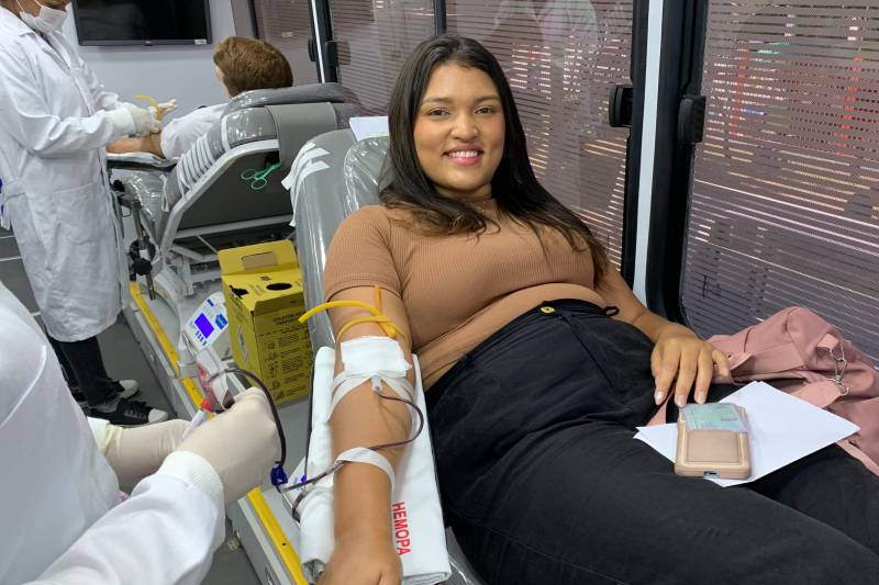 Estudante do curdo de fonoaudiologia da Uepa, Stephany Magalhães: "Eu achei legal, todos foram receptivos"A acadêmica de fonoaudiologia da Uepa, Stephanie Magalhães, que já havia doado sangue uma vez, descreve sua experiência como gratificante e conta que o sentimento de poder ajudar outras pessoas a motivou a retornar para uma nova doação. "Eu achei muito legal, todo mundo foi muito receptivo, e isso fez com que eu me sentisse segura em voltar e ajudar cada vez mais pessoas com o meu sangue," disse Stephanie.