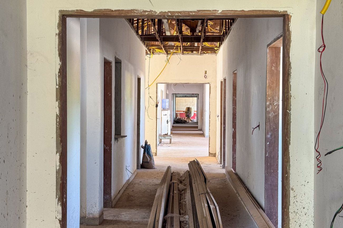 Com mais de 30% dos serviços executados, as obras incluem reestruturação do telhado, reforço estrutural das paredes internas e externas, sistema de drenagem e esgotamento, e instalações das redes hidráulica e elétrica.