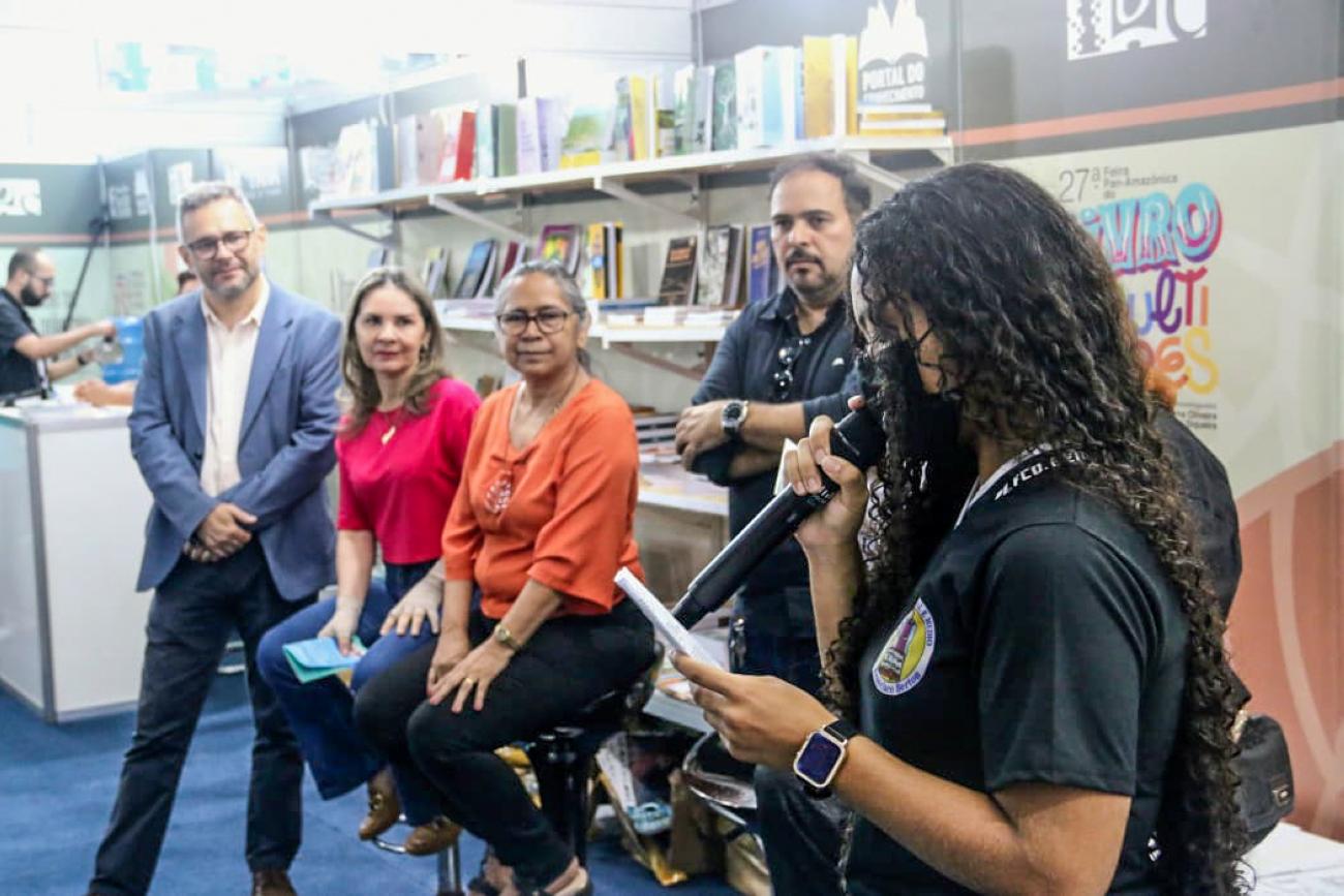“Belém e a Cop 30”. Esse é o tema da Coletânea de Poemas que alunos da Escola Estadual Padre Francisco Berton, do bairro do Tapanã, em Belém, lançaram, na quinta-feira (22), na 27ª Feira Pan-Amazônica do Livro e das Multivozes, no Hangar - Centro de Convenções da Amazônia. Além de autografarem a cartilha, os alunos puderam recitar os poemas aos visitantes do estande da Imprensa Oficial do Estado (Ioepa).