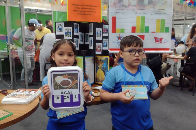 'Alfabetiza Pará' - Heloísa Costa, uma das professoras que expôs o trabalho em alfabetização, ressaltou que o Programa Alfabetiza Pará, implementado pelo governo do Estado, proporciona um trabalho em sala de aula com respaldo para adoção de um ensino lúdico, possibilitando resultados positivos, com crianças mais motivadas e concentradas, utilizando material de qualidade.