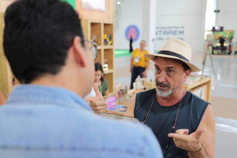 Sandro ficou encantado com a FITAA exposição chamou a atenção de Sandro Ruggeri, natural de Barcelona, que mora em Belém há 30 anos. Em Santarém a trabalho, ele aproveitou para conhecer a Feira e os produtos locais. "É fantástico. Vi produtos sustentáveis, com preocupação com o nosso futuro. É um investimento importante, mostrar que temos coisas importantes aqui. É de Santarém para o resto do mundo. De Alter do Chão para o resto do mundo, pensando sempre na conservação".