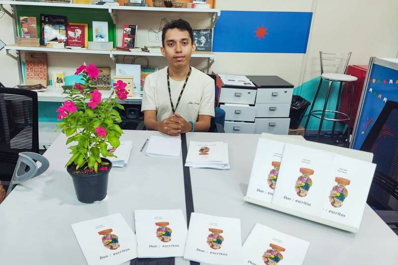 O Jovem escritor paraense Italo Castro participou, neste sábado, 24, de uma sessão de autógrafos que marcou o lançamento do livro "Duo: Escritos". A obra, em parceria com a escritora Liana Reis, foi lançada na 27ª Feira Pan-Amazônica do Livro e das Multivozes, que acontece até o domingo, 25, em Belém.
