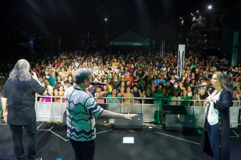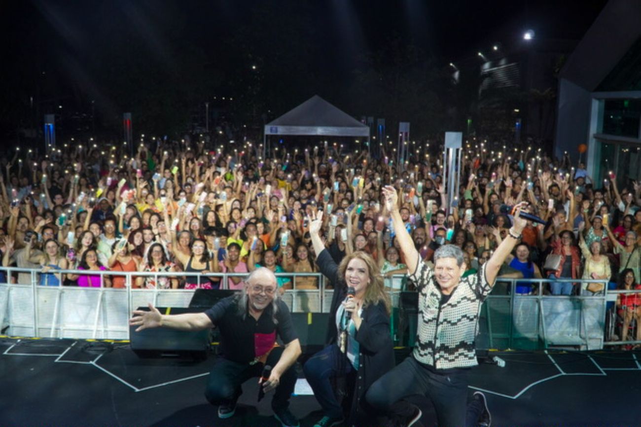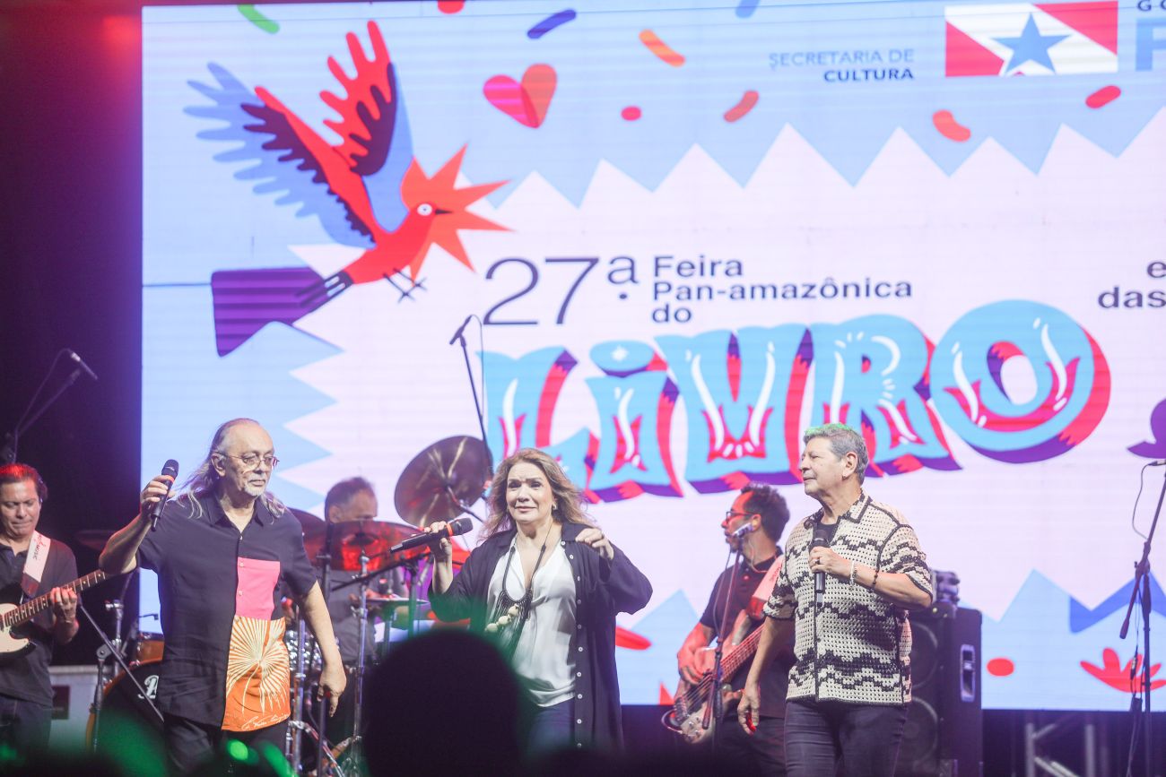 O penúltimo show musical da 27ª Feira Pan-Amazônica do Livro e das Multivozes aconteceu na noite deste sábado, 24, na Arena Amazônica, em Belém. No palco, o público recebeu com alegria o grupo Trilogia, apresentado pelos artistas paraenses Lucinnha Bastos, Mahrco Monteiro e Nilson Chaves.