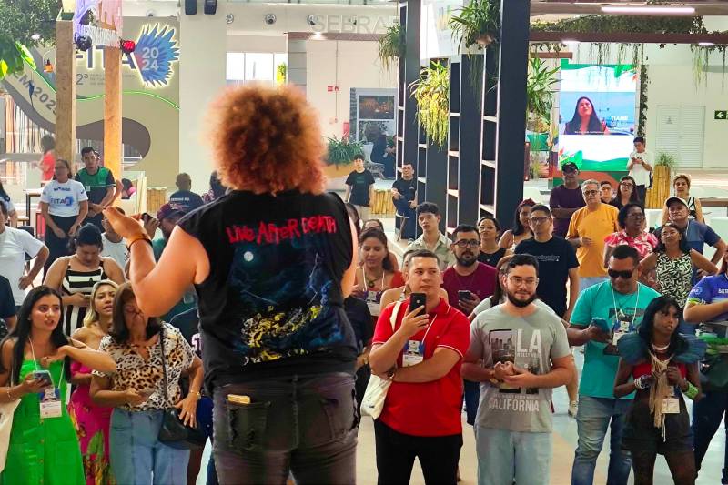 No espaço central da feira, 64 expositores apresentaram destinos turísticos da Amazônia e do Brasil, além da comercialização de produtos nativos, como artesanato e alimentos.