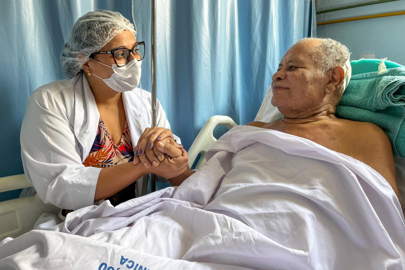 Internado em estágio avançado, o organismo de Francisco não mais responde ao tratamento curativo, contudo, tem a esperança de recuperar a saúde. Ele e a esposa são acompanhados por uma equipe multiprofissional. “Essa atenção é importante, não temos nada a reclamar porque nos dão um suporte incrível. Carinho, afeto e conversa temos sempre. Quando estamos para baixo, elas nos animam. Eu falo principalmente por mim, pois tem dias que o desespero bate”, disse Sofia Costa.