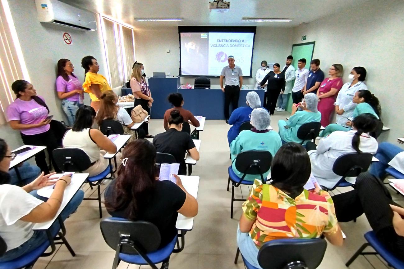 Em apoio ao 'Agosto Lilás', campanha de conscientização e prevenção da violência contra a mulher, o Hospital Regional do Sudeste do Pará Dr. Geraldo Veloso (HRSP), em Marabá, promoveu, na segunda-feira, 26, palestras educativas aos profissionais de saúde. A iniciativa capacitou e sensibilizou a equipe para identificação e denúncia de sinais de abuso contra mulheres, oferecendo atendimento humanizado e acolhimento das vítimas.