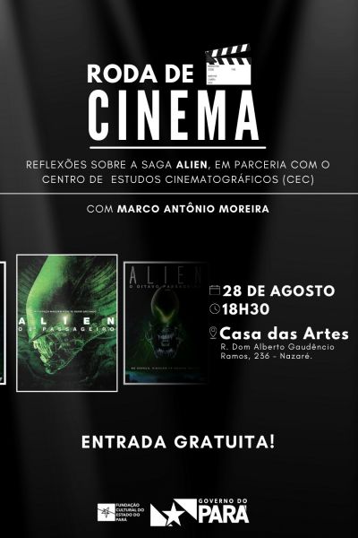 Nesta quarta-feira, 28, a partir das 18h30, a Casa das Artes será palco de mais uma edição do projeto Roda de Cinema. Desta vez, ela será dedicada à análise e debate da saga Alien, um clássico do cinema contemporâneo. Promovida pelo Centro de Estudos Cinematográficos (CEC) em parceria com a Casa das Artes, a ação procura explorar as múltiplas camadas temáticas presentes nos filmes da franquia e tem entrada gratuita.