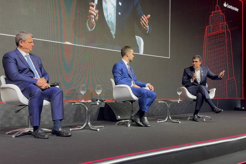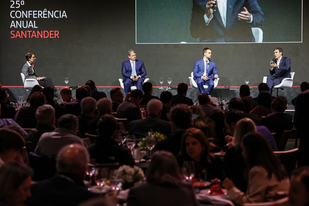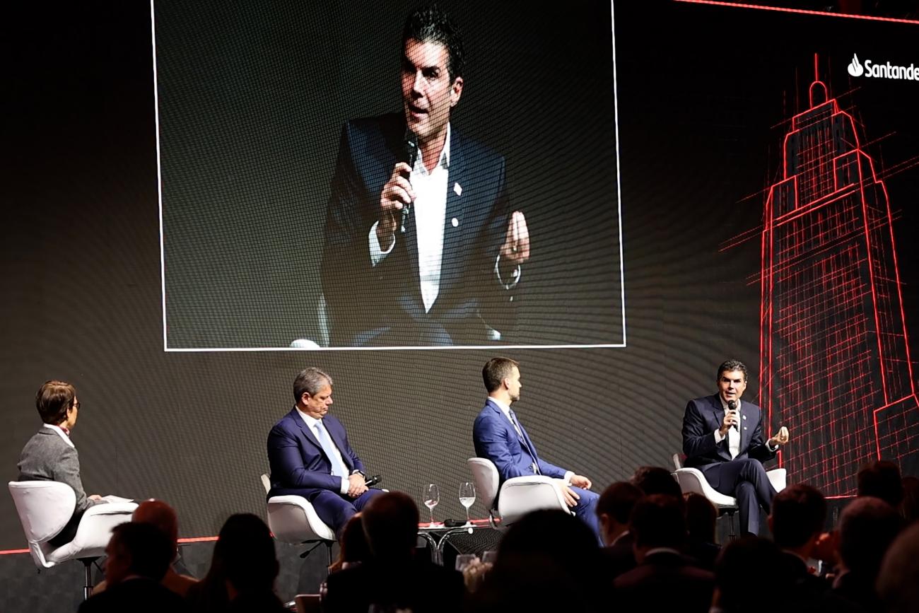 Em São Paulo, o governador Helder Barbalho participou, nesta quarta-feira (28), da 25ª "Conferência Santander – Transformação e conexões que impactam negócios e sociedade", em São Paulo. Ao lado dos governadores Tarcísio de Freitas (SP) e Eduardo Leite (RS), Helder Barbalho apresentou as potencialidades do Pará e defendeu a economia verde como potencial estratégico da Amazônia.