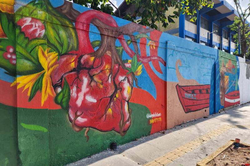 Entre figuras da biodiversidade amazônica e a cultura dos povos originários, está nos planos a homenagem à Tuíre Kayapó, - uma das maiores lideranças indígenas do Pará, que faleceu no início do mês -, e ao educador Paulo Freire entre os painéis. “Fizemos questão de contribuir para essa ação, que culmina uma luta iniciada, por nós, em 2021, para a reforma deste quadrante. Hoje temos uma calçada uniforme, adaptada para PCDs, iluminação eficiente, paisagismo e, agora, este belo mural expressando as visões destes artistas urbanos”, pontua o diretor do CCSE, Anderson Maia.