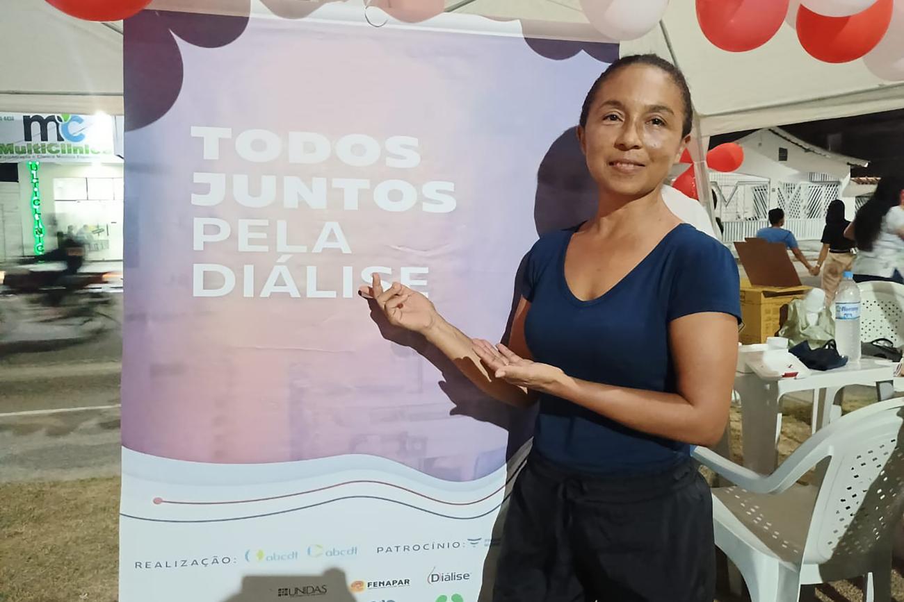 Elisângela do Socorro Pereira.Aprovação – Para Elisângela do Socorro Pereira, de 45 anos, que é usuária renal transplantada e recebe atendimento no Setor de Hemodiálise do HRPM, a programação é muito necessária. "Foi muito importante, estou encantada com a iniciativa, pois traz informação que é fundamental e muito necessária para a nossa população que as vezes desconhece certos assuntos de saúde. Durante a ação, aprendi que precisamos reforçar os nossos cuidados com os rins, porque a rotina acaba nos deixando negligentes e a abordagem tem sido perfeita. Parabéns!", elogiou.