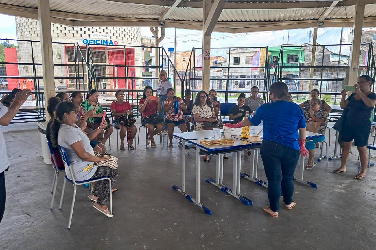 A representante do Movimento de Cultura Afro-brasileira e Arte Popular (Mocaap), em Castanhal, Eva Monteiro, também agradeceu a Semas por levar até o município a oficina de produção de sabão e ecobijuetrias. “Sabemos da importância dessa oficina, um impacto significativo para a comunidade, como a educação e capacitação, sustentabilidade, economia doméstica, geração de renda, promoção de saúde e higiene, fortalecimento também dos laços comunitários. Essas mulheres aqui da comunidade podem estar produzindo os seus produtos, como a ecojóia, sabão caseiro, e gerando renda a partir da sua casa. Então, só tenho a agradecer por esse momento”, concluiu Eva.