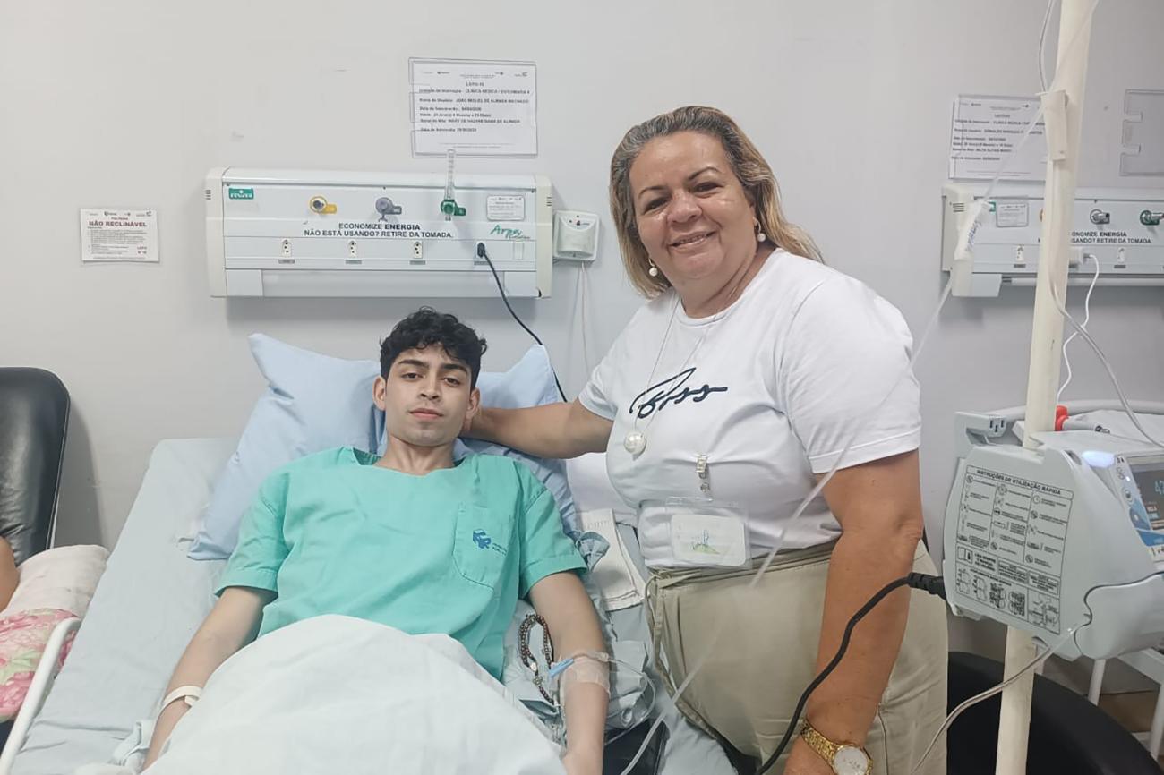 João Miguel Machado e acompanhante: com 10 anos de funcionamento, Hospital é "porto seguro"Na avaliação do biomédico João Miguel Machado, 24 anos, internado na Clínica Médica, é “ótimo o atendimento. A equipe é acessível, os médicos são preparados, todas as orientações necessárias são bem repassadas e a equipe de enfermagem é bem atenciosa. Para mim, o HRPL é um porto seguro”.