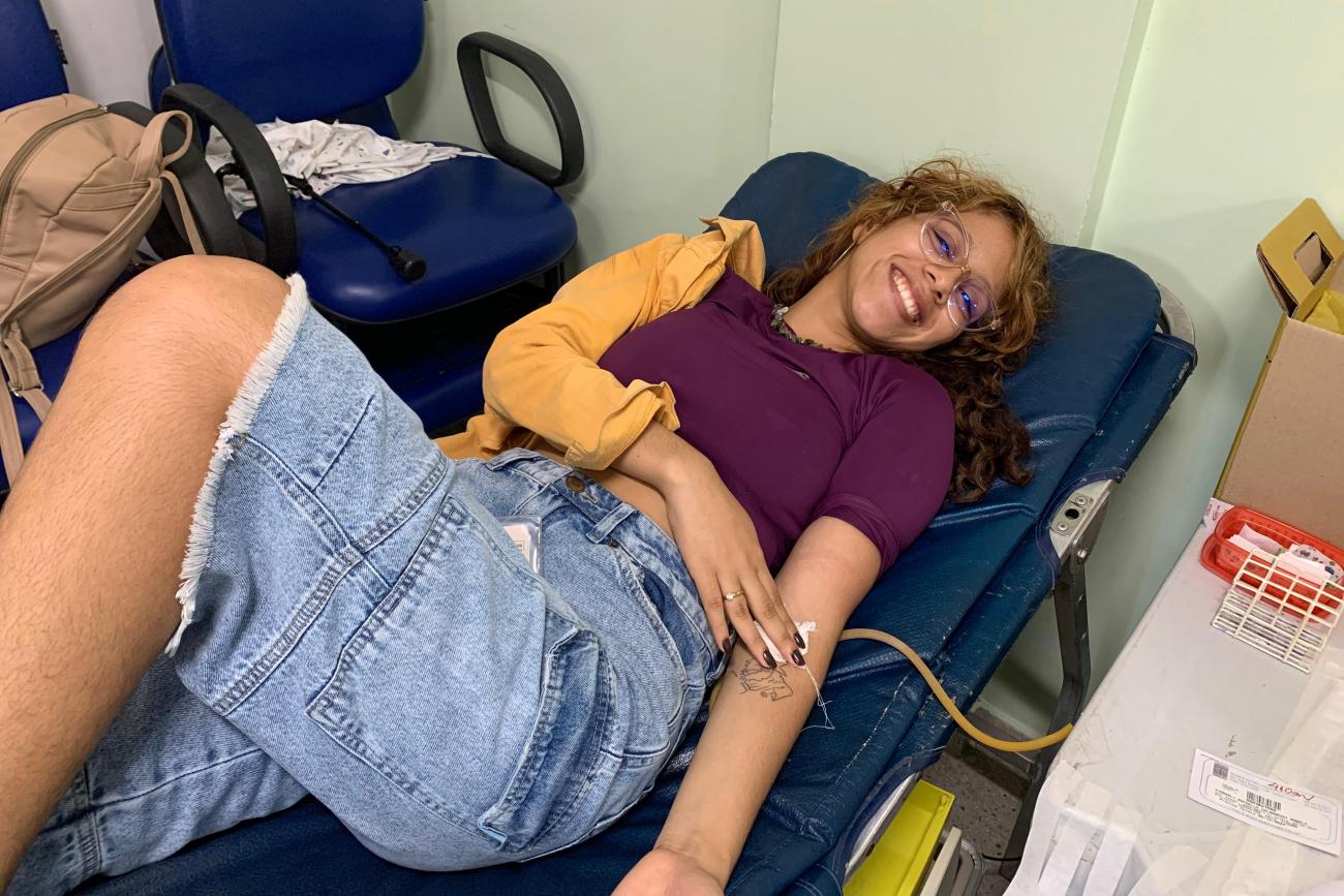 A acadêmica de Letras na Uepa, Kimberly Calandrini, doou sangue pela primeira vez e