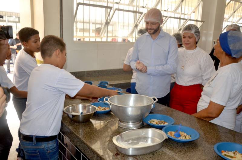 Secretário Rossieli Soares acompanha a novidade no cardápio das escolas públicas do Pará"A gente vê que os estudantes estão numa festa querendo comer o açaí. Nas escolas têm sido uma recepção muito grande, e faz parte do dia a dia, da cultura alimentar paraense, e isso é muito importante. Tem a condição nutricional, que é essencial para complementar. Não vem sozinho, obviamente, mas ele (o açaí) é fundamental para a qualidade da alimentação, e também ajuda a desenvolver cadeias produtivas do nosso Estado, e cada vez mais a gente quer buscar dos fornecedores do próprio Pará, para que a gente traga mais açaí para dentro das escolas. É uma das novidades importantes, e com o controle e a qualidade que a gente precisa para servir, de maneira que o nosso aluno goste e que sirva de incentivo para ele vir e permanecer na escola", destacou o secretário de Estado de Educação, Rossieli Soares.