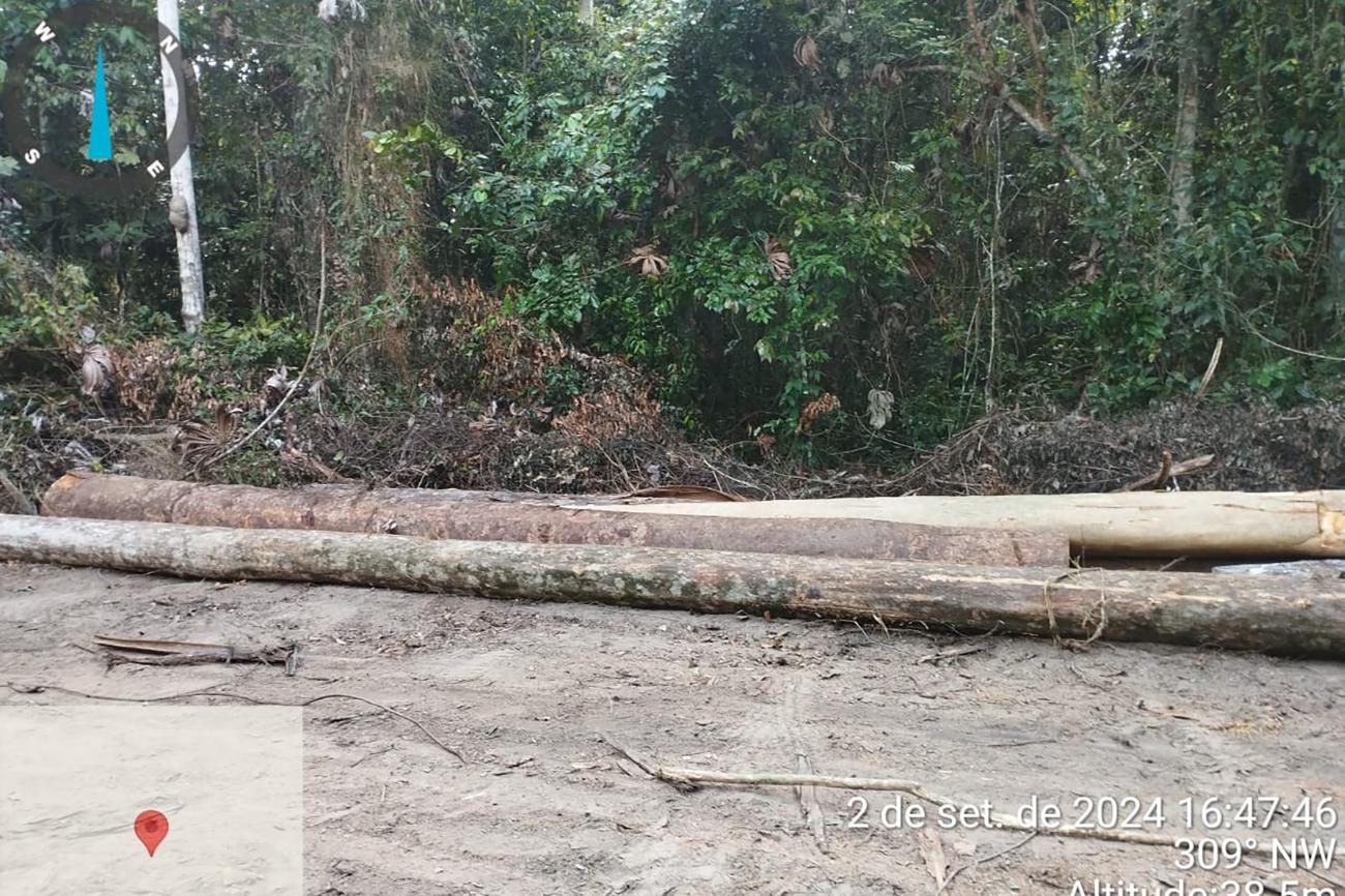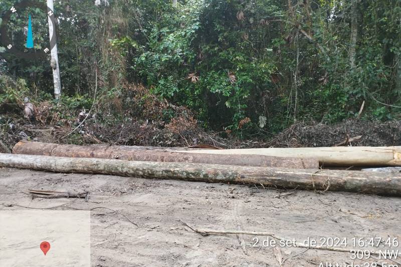 Durante as diligências no local, os agentes abordaram três pessoas, elas estavam desmatando a área com o auxílio de uma motosserra; 358,26 metros cúbicos de madeira mista foram apreendidas, juntamente com o motosserra utilizado para cometer o delito.
