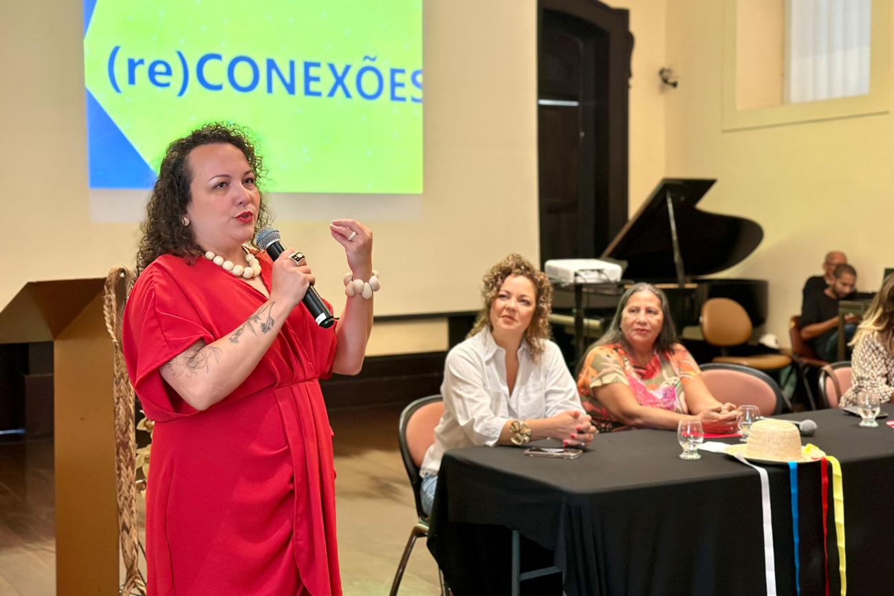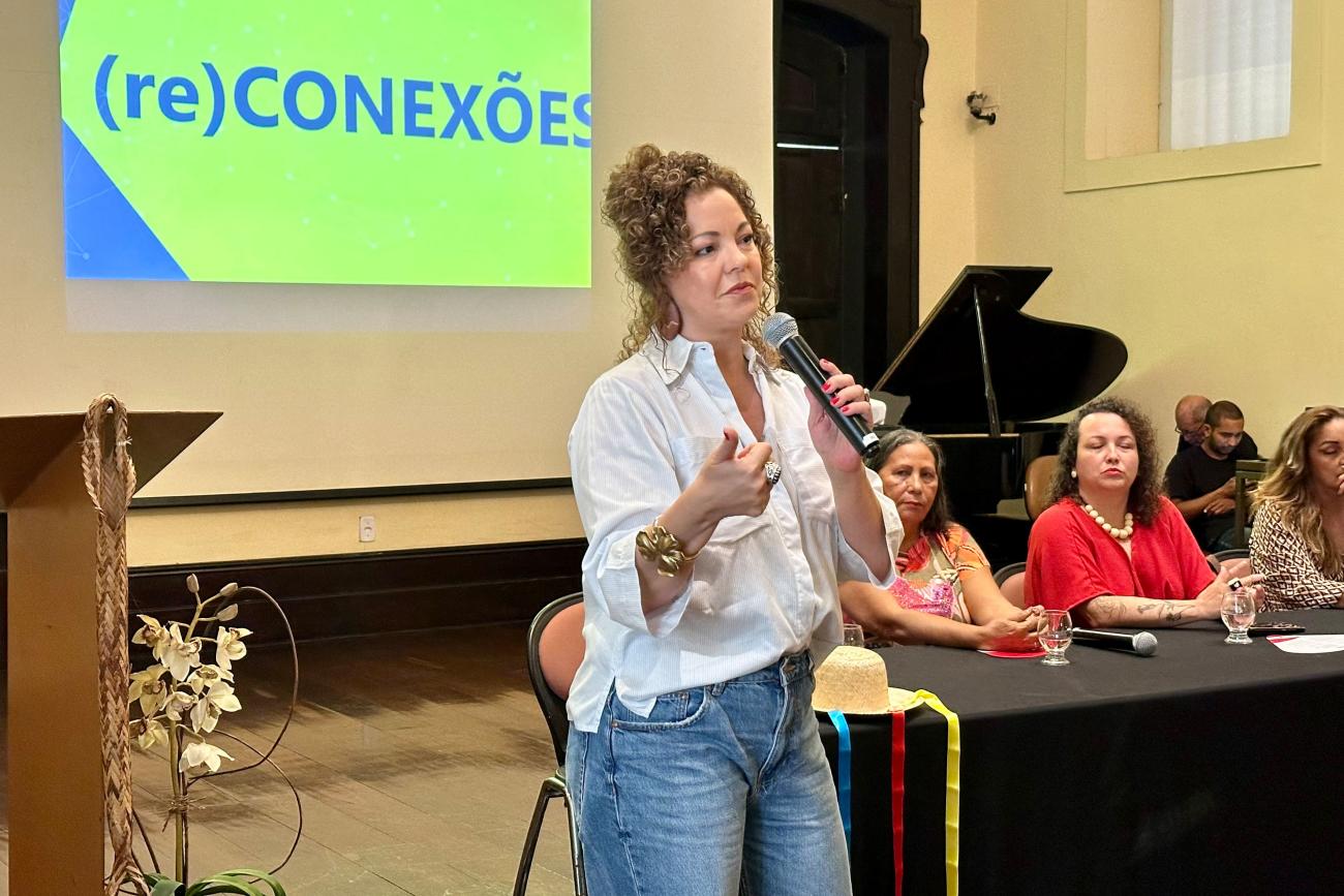 Fernanda Castro: objetivo é criar e fortalecer políticas públicasAlinhamento - Fernanda Castro, do Ibram, reforçou que o (re)CONEXÕES tem como objetivo criar e fortalecer políticas públicas “junto com as pessoas que estão nos museus, nos pontos de memória, e que fazem a cultura acontecer”. Ela enfatizou que as etapas “são espaços importantes para ouvir como cada estado quer contribuir para essa política, com suas especificidades, realidades e necessidades em relação ao governo federal”. “Nós vamos aos locais e discutimos as diretrizes dessas políticas públicas”, ressaltou.