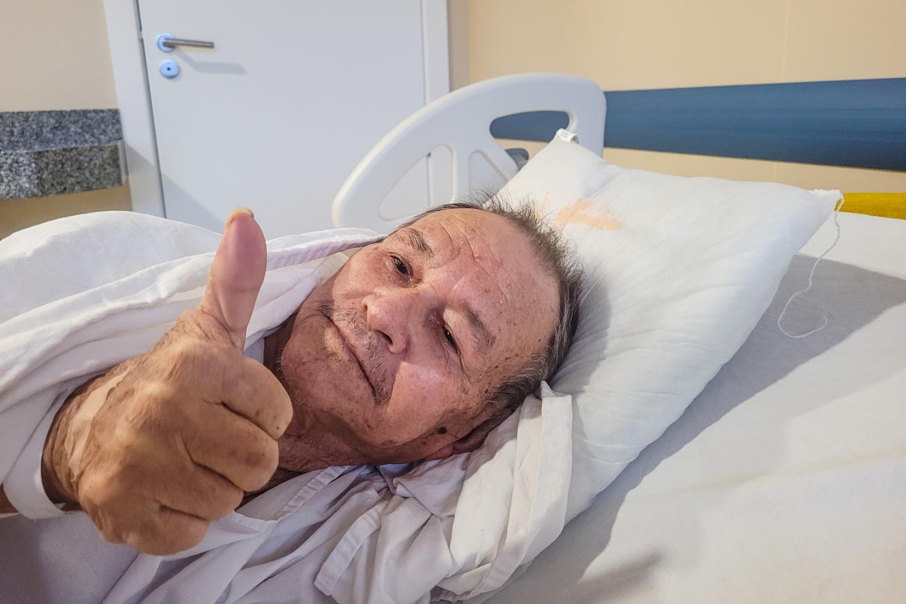 "Eu cheguei aqui e vi que entre todos os cinco hospitais que já passei, este é o melhor. Este vai entrar pra história, porque um bom atendimento, as pessoas não esquecem e valorizam. Eu gosto demais de todo mundo daqui. Já conheço todo mundo, todo mundo me conhece. Esses dias falei a um dos médicos sobre como estou sendo atendido aqui, por todos. Ele ficou alegre. Eu falei porque é bom a gente falar, para saberem que fazem um bom trabalho. O médico disse que iria contar para todos que eu estou gostando de estar aqui. A minha filha falou a você, e é verdade mesmo o que ela disse. Ninguém sente falta de hospital, mas deste hospital, sentirei saudades, porque aqui tudo é difenciado", ressalta o paciente.