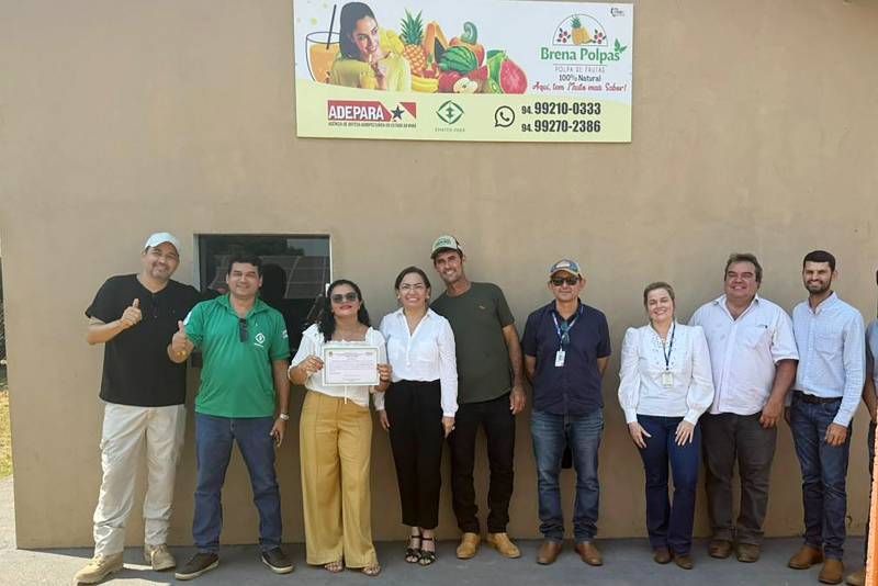 O documento habilita estabelecimentos que processam polpas de frutas e derivados da mandioca a comercializar seus produtos em todo o território paraense, e também que forneçam alimentos para a merenda escolar por meio de parcerias com as prefeituras locais.Equipe da Brena Polpas mostra a certificação, que abre novos mercados para seus produtos