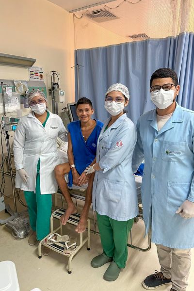 Profissionais de Saúde do Hospital e o paciente Edivan