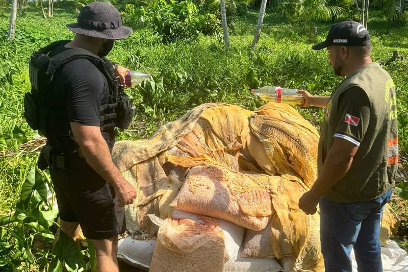 A Agência de Defesa Agropecuária do Estado do Pará (Adepará) apreendeu no início desta semana aproximadamente 1.500 quilos de pirarucu salgado e 600 kg de camarão pré-cozido salgado, em uma fiscalização hidroviária realizada em conjunto com agentes de segurança pública, na Base Fluvial Integrada de Antônio Lemos, na região do Rio Tajapuru, no distrito de Antônio Lemos, em Breves, no Arquipélago do Marajó.