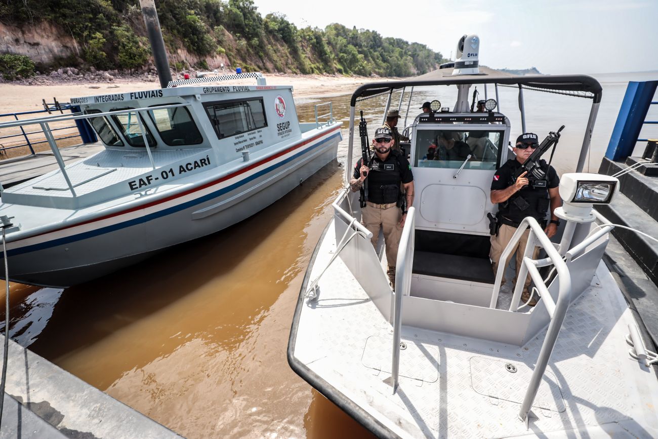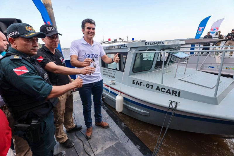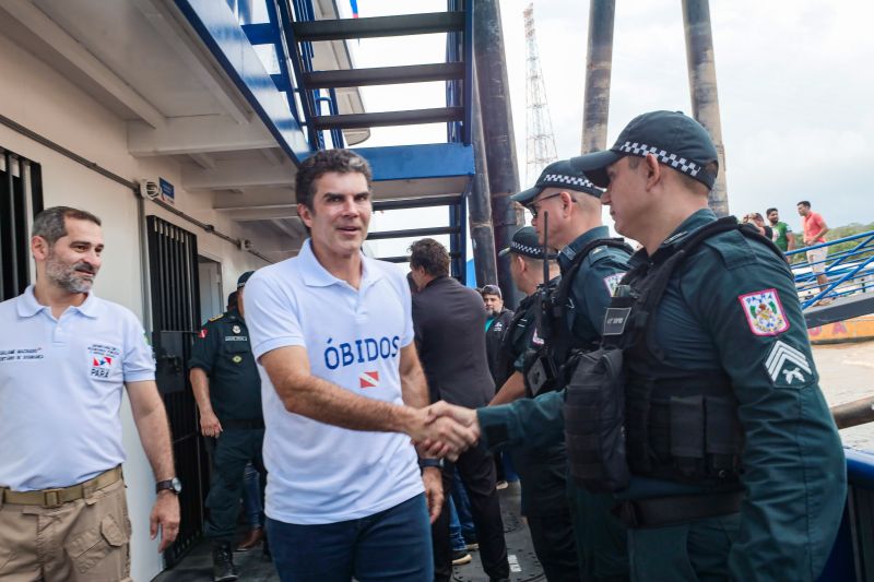 O governador Helder Barbalho explicou sobre a estratégia de Segurança Pública nesta região. “A escolha de fazer a base fluvial aqui em Óbidos é exatamente por ser o ponto de menor distância entre as margens do Amazonas, com o maior calado de profundidade, e o local em que todas as embarcações, obrigatoriamente que venham do Amazonas (no sentido de Santarém, de Belém) precisam passar. Portanto, diferente de outras regiões que existem furos e rotas alternativas, aqui obrigatoriamente precisa passar por esse trecho, o que faz com que a fiscalização seja estratégica. Por isso, nós temos uma base fluvial que está aqui localizada com o suporte de duas outras embarcações, inclusive uma blindada, para fazer a busca, capturas e o enfrentamento à criminalidade”, explicou o governador.