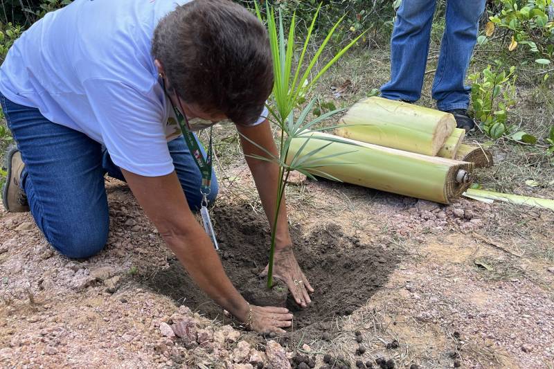 As mudas plantadas incluem espécies como andiroba, patauá, açaí, bacuri pari, ananim branco, ipê amarelo, cajuí, pracaxi, virola e buriti