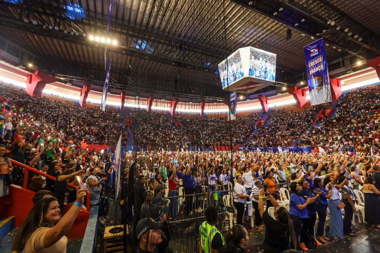 Marcada por alegria e emoção, a Secretaria de Estado de Educação do Pará (Seduc) reuniu professores, servidores, estudantes, pais e responsáveis na manhã desta segunda-feira (16). Com um público de mais de 10 mil pessoas, o Governo do Estado anunciou a data do primeiro repasse do maior programa de bonificação de servidores, o "Escola que Transforma", a ser pago no dia 15 de outubro. O programa é um investimento do Estado no reconhecimento e valorização dos servidores da rede estadual de ensino, que, a depender do alcance das metas estabelecidas pela Seduc no Índice de Desenvolvimento da Educação Básica (Ideb), receberão até 3,5 salários, um investimento total de R$ 373 milhões. Neste semestre o Pará teve um crescimento histórico no Ideb, saltando da 26ª para a 6ª posição no ranking nacional.