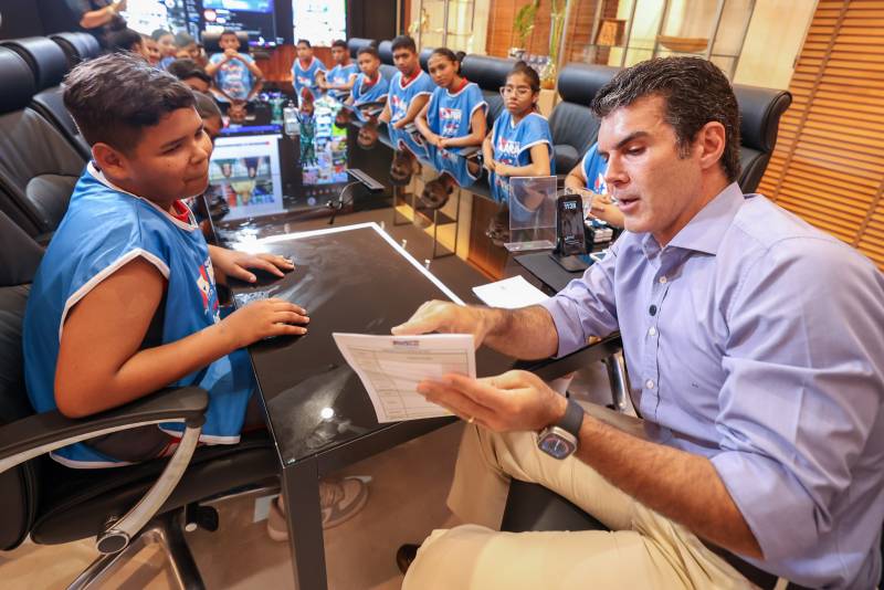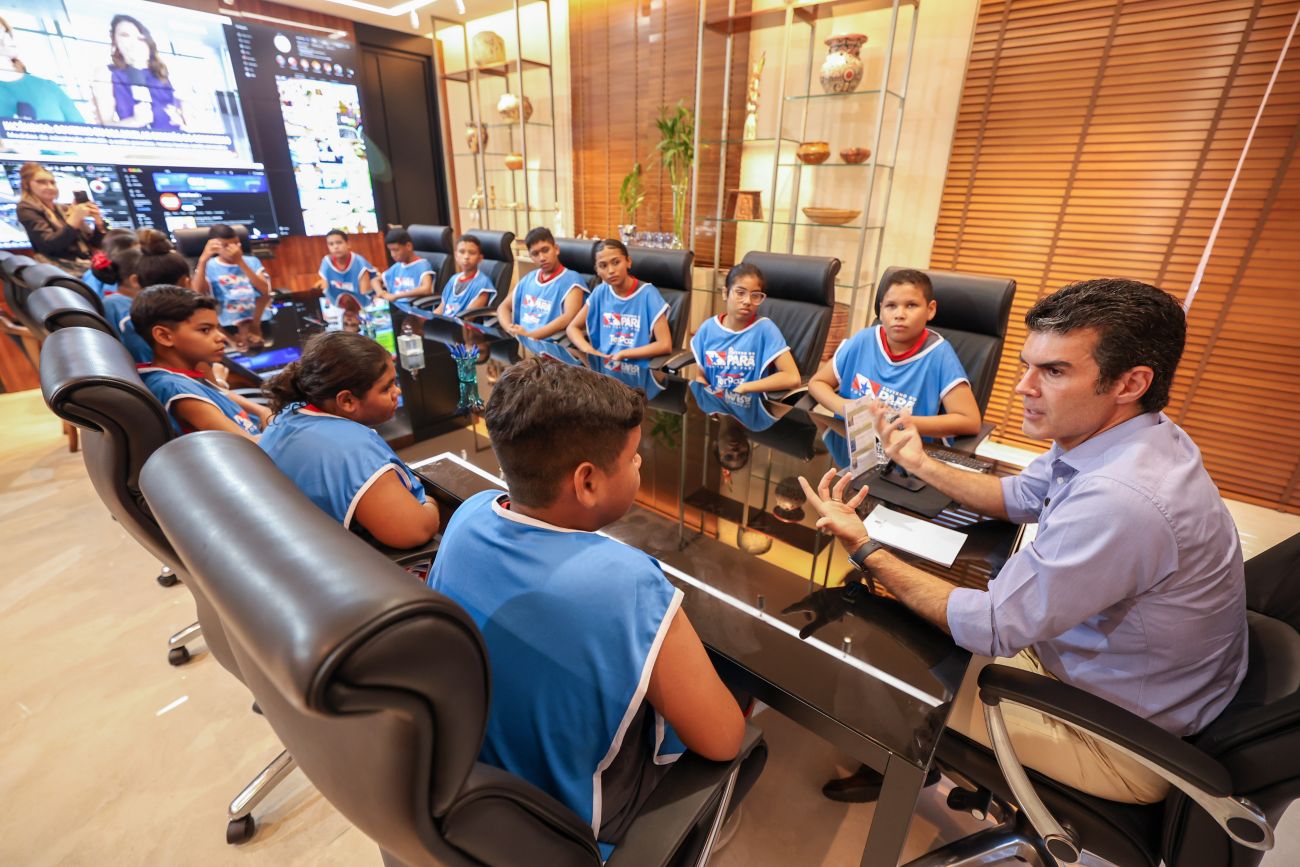 Ao longo da manhã, cerca de 15 estudantes, atendidos na UsiPaz por meio do programa “Escola da Vida”, tiveram a oportunidade de visitar prédios do complexo administrativo estadual, na capital paraense, como o Batalhão de Ações com Cães (BAC), o Espaço COP 30, que reúne os coordenadores de ações relacionadas à Conferência das Nações Unidas sobre Mudanças de Clima, que será realizada em novembro de 2025, além do Palácio dos Despachos, onde foram recebidos pelo Governador do Estado, Helder Barbalho.
