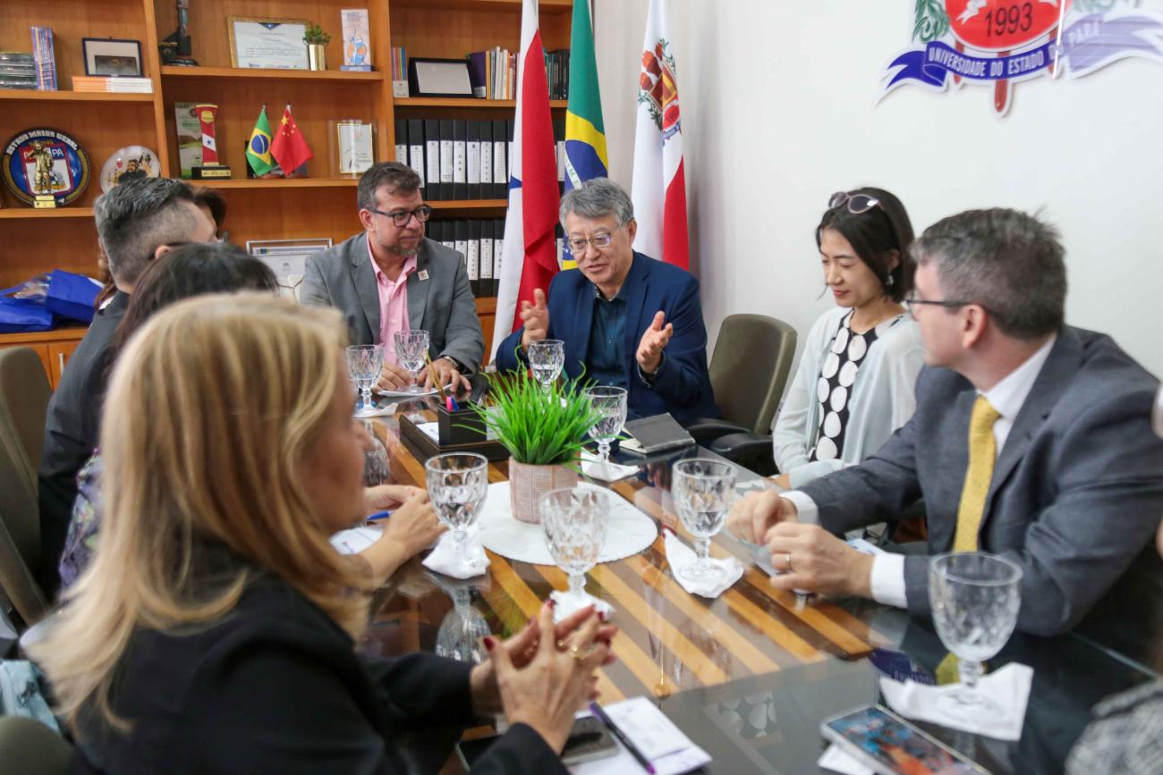 Na tarde desta quarta-feira, 18, o reitor da Universidade do Estado do Pará (Uepa), Clay Chagas, recebeu o conselheiro de Educação da Embaixada da China no Brasil, Wang Zhiwei, acompanhado da vice-reitora Ilma Pastana, representantes da gestão superior da instituição e diretores do Instituto Confúcio na Uepa.
