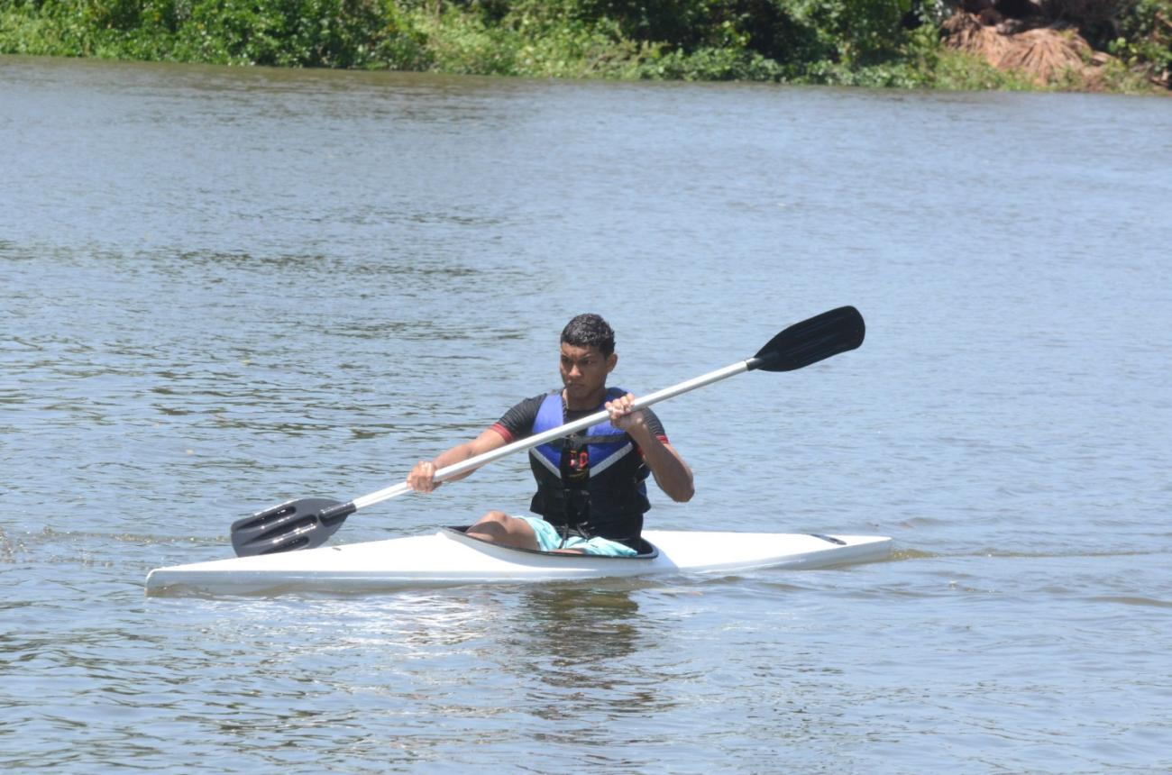 Estudantes da rede estadual e comunidade têm aula de canoagem, em Marituba