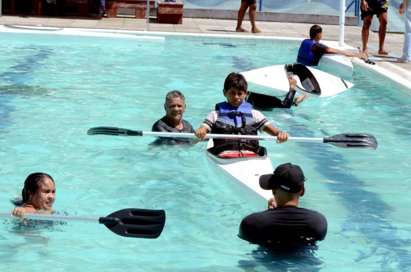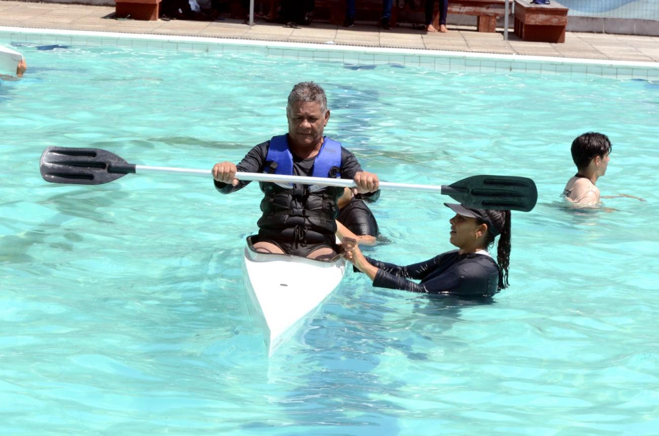 Participante das aulas de natação e hidroginástica, a dona de casa, Cléo Marque, mais conhecida como ‘peixinho’, viu na canoagem uma oportunidade de melhorar a sua autoestima. “Já participei das aulas há três meses e isso fez com que a minha autoestima melhorasse, mesmo fazendo natação e hidroginástica, as aulas de canoagem foram que me motivaram mais a participar, porque não fica só na teoria, vamos para a prática. Fiquei muito emocionada quando consegui ter o equilíbrio para as aulas, isso fez toda a diferença, até porque começo a ajudar outros alunos. Eu gosto muito quando partimos para o rio, porque é diferente, ficamos mais a vontade”, ressalta Cléo Costa, dona de casa.