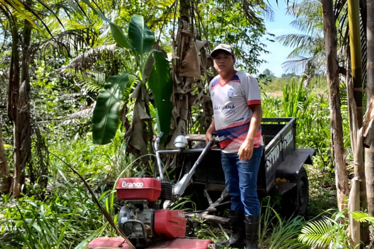 Solteiro, sem filhos, Teixeira conta com o apoio da Emater desde 2009. Hoje usufrui do sexto crédito rural a partir de projeto do Órgão. Em agosto, por meio de um Programa de Fortalecimento da Agricultura Familiar (Pronaf) da linha Custeio com o Banco da Amazônia (Basa), no valor de pouco mais de R$ 20 mil, comprou um tratorito, inovação que transformou o dia a dia, do plantio à colheita. Segundo o beneficiário, com a máquina agrícola, em substituição a carroça com animal de tração, o trabalho braçal diminui em mais de 85%. Os recursos serviram, ainda, à aquisição de adubo orgânico e bombas e tubulações para irrigação.