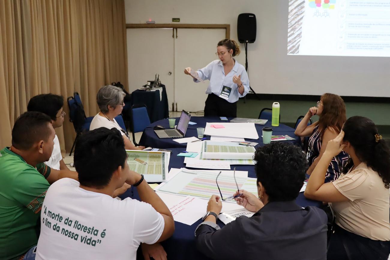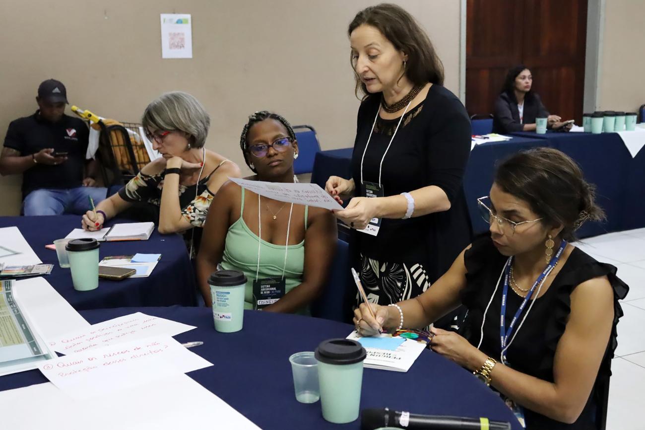 "Nesses dois dias, estamos reunidos para construir os indicadores do Sisredd+ Pará. Estamos trabalhando a partir de um cenário em que já temos alguns indicadores nacionais construídos, mas também adaptando à nossa realidade local, às nossas estruturas de salvaguardas, considerando as especificidades do Pará, nossas populações tradicionais, as questões de posse, entre outros fatores. Estamos construindo indicadores sólidos, que poderão ser verificados e auditados por terceiros, por toda a sociedade, e também para que, quando estivermos na fase de auditoria do REDD+, esses indicadores já estejam disponíveis para verificação pelos auditores", explica Renata Nobre, secretária adjunta de Gestão de Recursos Hídricos e Clima da Semas.