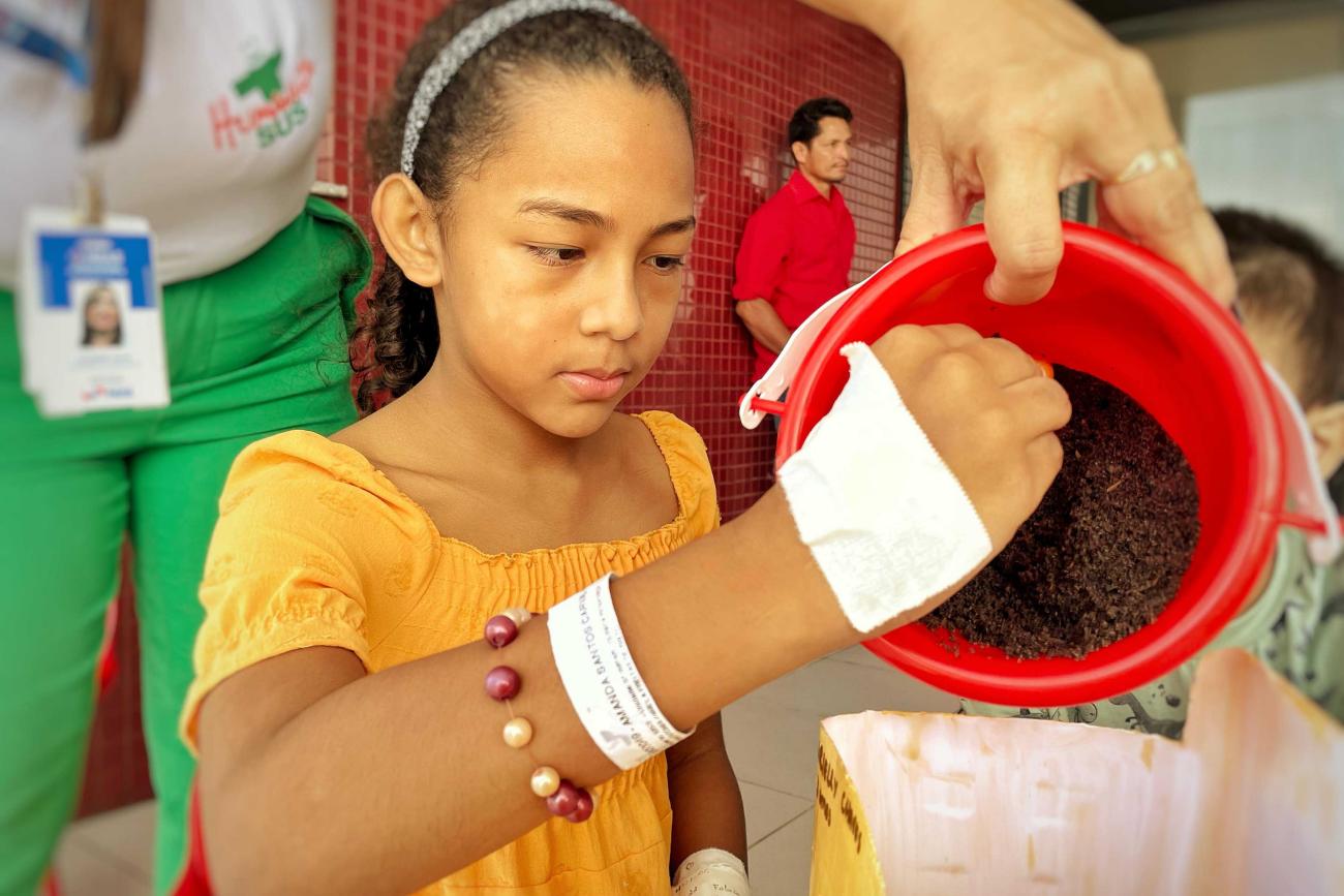“Dei o meu melhor e escolhi a planta mais bonita, pois quem vai receber merece muito amor de todos nós”. As palavras e o gesto carinhoso da pequena Maria Clara, de apenas 6 anos, têm uma razão: a menina sabe que, após finalizar a atividade, os vasos com flores serão entregues aos “vovôs e vovós”, como ela define, que estão em um espaço de acolhimento para idosos na capital paraense.