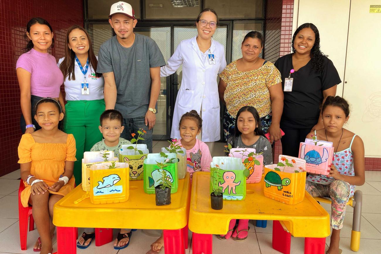 A Comissão de Humanização (CH) do Hospital Regional Dr. Abelardo Santos (HRAS), no Distrito de Icoaraci, em Belém, promoveu nesta sexta-feira (20) uma ação que uniu gerações em torno de uma atividade cheia de vida e carinho. No primeiro momento, crianças que estão em tratamento na unidade participaram da oficina de pintura de vasos de plantas, cada peça com desenhos e cores personalizadas.