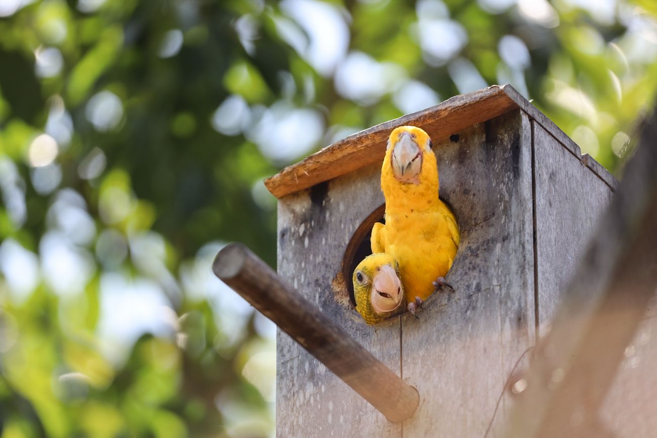 O nascimento dessas aves marca um importante avanço no Projeto de Reintrodução e Monitoramento de Ararajubas na Região Metropolitana de Belém. Os filhotes, que já estão com cerca de dois meses, começam a observar o comportamento dos adultos e se prepararem para conquistar os céus.