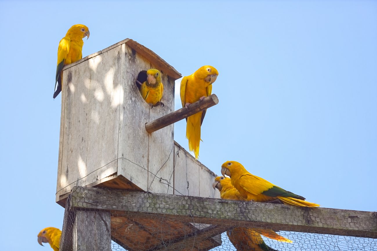 Cinco filhotes de ararajubas nasceram no Parque Estadual do Utinga “Camillo Vianna”, em Belém, graças aos esforços do Governo do Pará, por meio do Instituto de Desenvolvimento Florestal e da Biodiversidade (Ideflor-Bio) e da Fundação Lymington, para a preservação da biodiversidade amazônica.