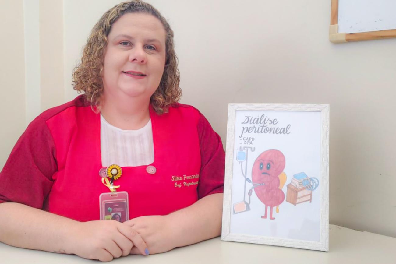 Um dos profissionais de saúde que atuam no cuidado de pacientes com doenças renais, são os enfermeiros nefrologistas. No programa de Diálise Peritoneal, o Enfermeiro realiza toda a assistência, treinamento, avaliação do acesso peritoneal, controle de materiais e toda a logística de acompanhamento do paciente domiciliar. Exercendo a função desde a implantação do serviço, a Enfermeira Sílvia Fernandes, é quem faz o acompanhamento e destaca a importância do programa.