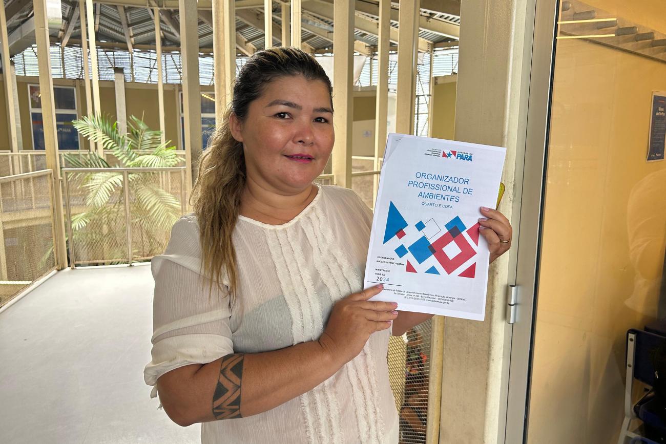 A diarista Patrícia Isabel, de 28 anos, ficou realizada com a oportunidade. Para ela, que já participa de outros cursos na Usina da Cabanagem, a qualificação vai ajudar no emprego atual e no futuro, com a chegada da COP 30. "É muito importante essa oficina, pois é uma oportunidade gratuita que estamos recebendo. A usina nos proporciona tudo isso, então é maravilhoso. Nunca participei de algo parecido e agora posso dizer que estou capacitada para o mercado", disse.